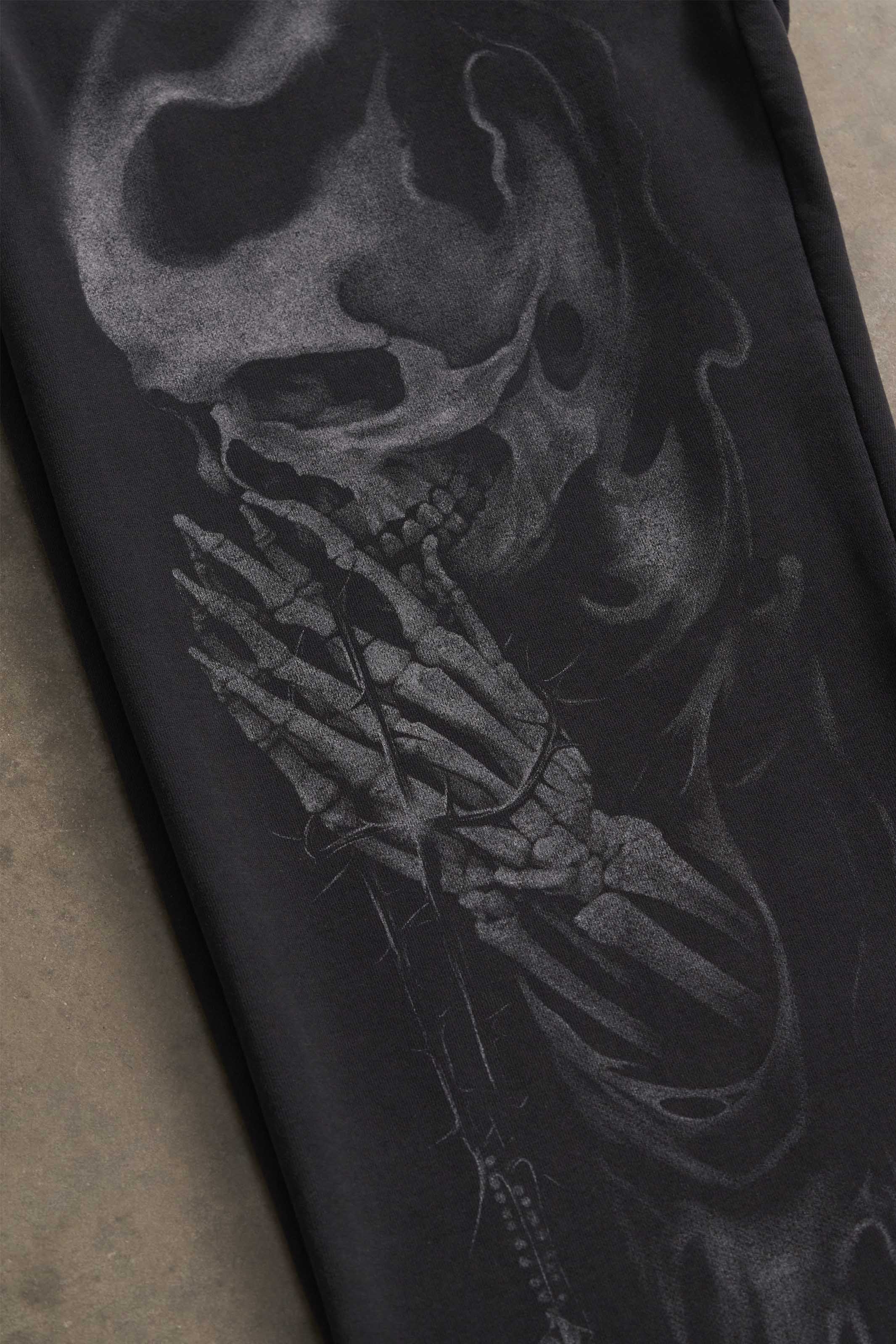 DESIGN: Designed with a baggy fit, these sweatpants are crafted from premium 100% cotton, boasting an ultra-heavyweight 460 GSM for durability and a luxurious feel. Featuring a striking printed skull graphic on the left leg, the design seamlessly integrates into the fabric, giving it a natural and elevated aesthetic.