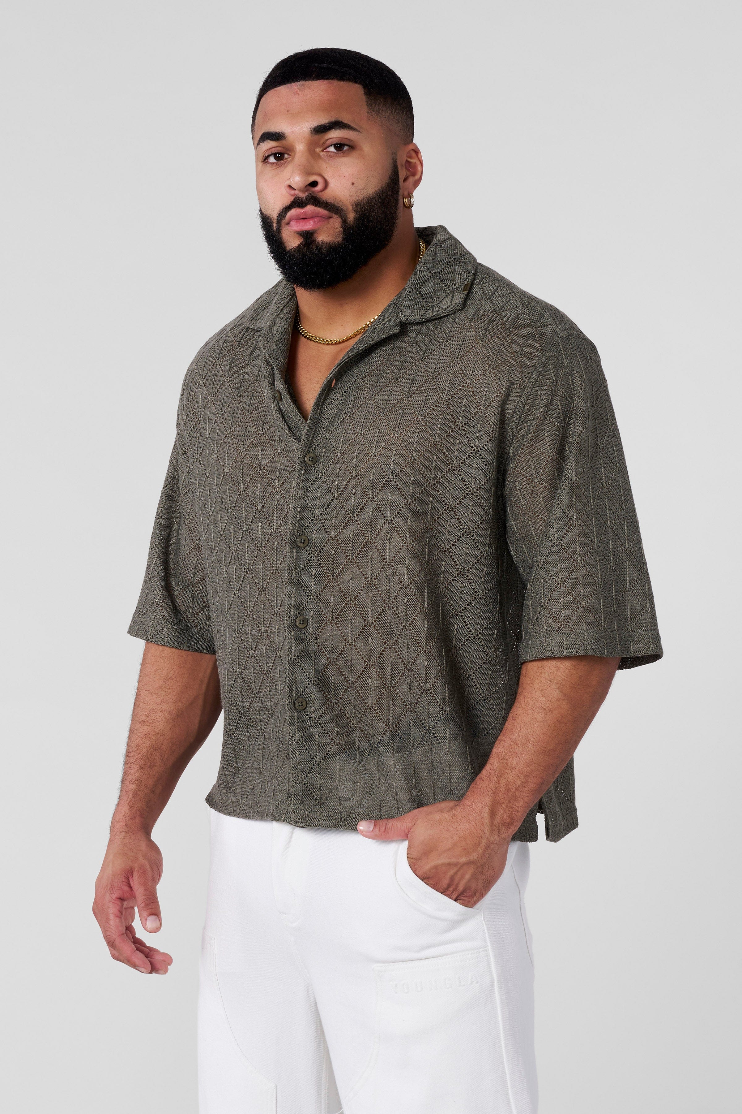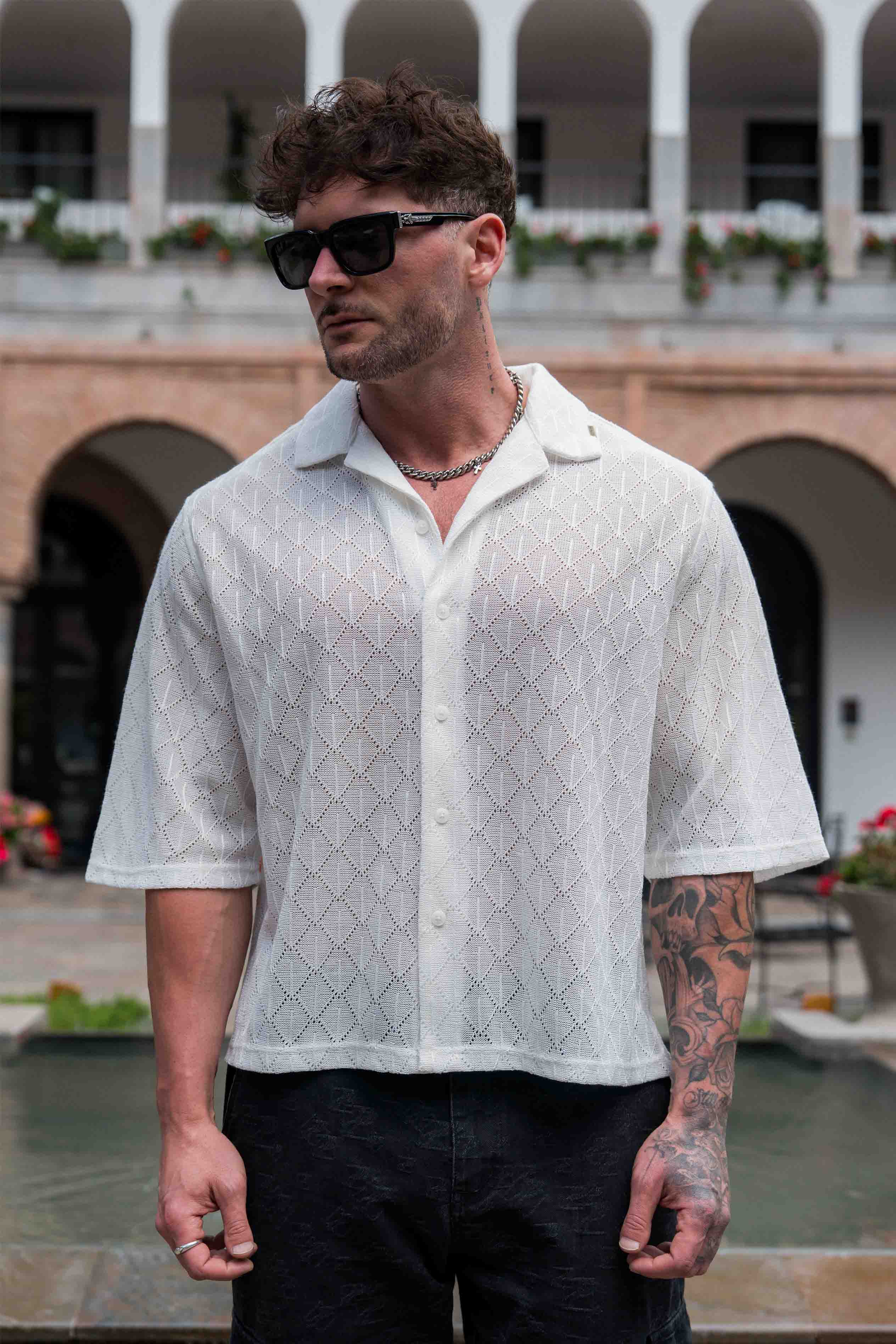 DESIGN: Light, breathable, and effortlessly stylish, the Swaggy Crochet Button-Up is your go-to for summer parties and laid-back vibes. Made from 100% polyester at 255 GSM, it’s lightweight yet structured, giving you the perfect drape.