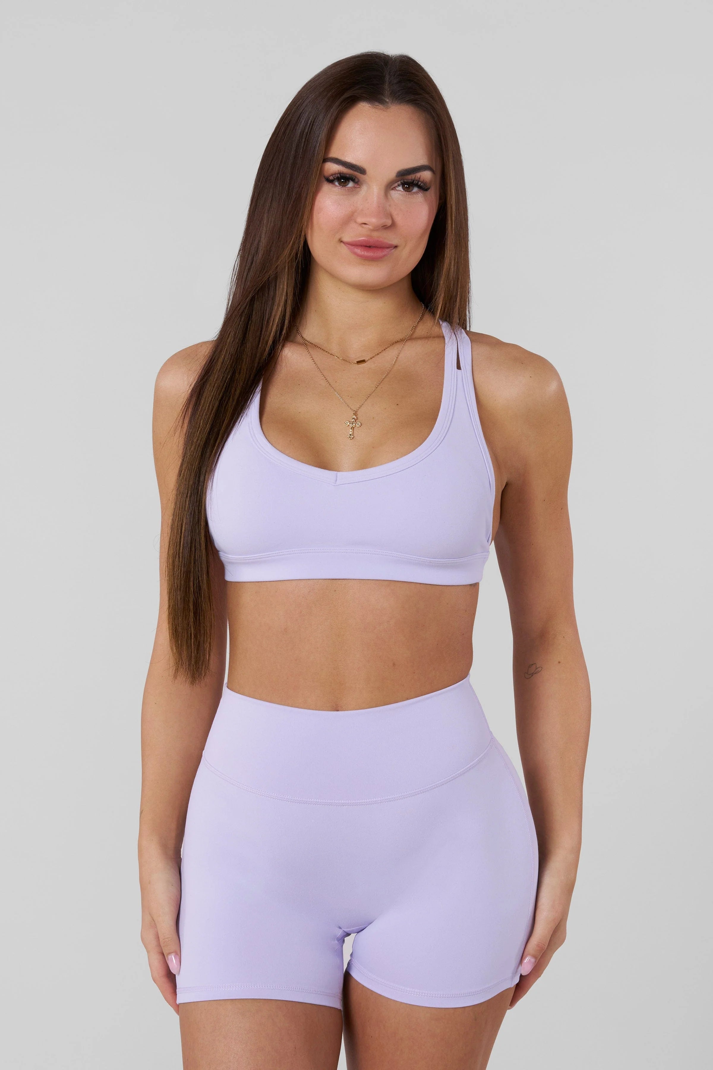 DESIGN: Our cutest sports bra with a double cross back design. The bra is made with extremely comfortable and very stretchy fabric. This bra has medium support to get you through any workout. The double cross back sports bra has a reflective YoungLA logo printed on the back.