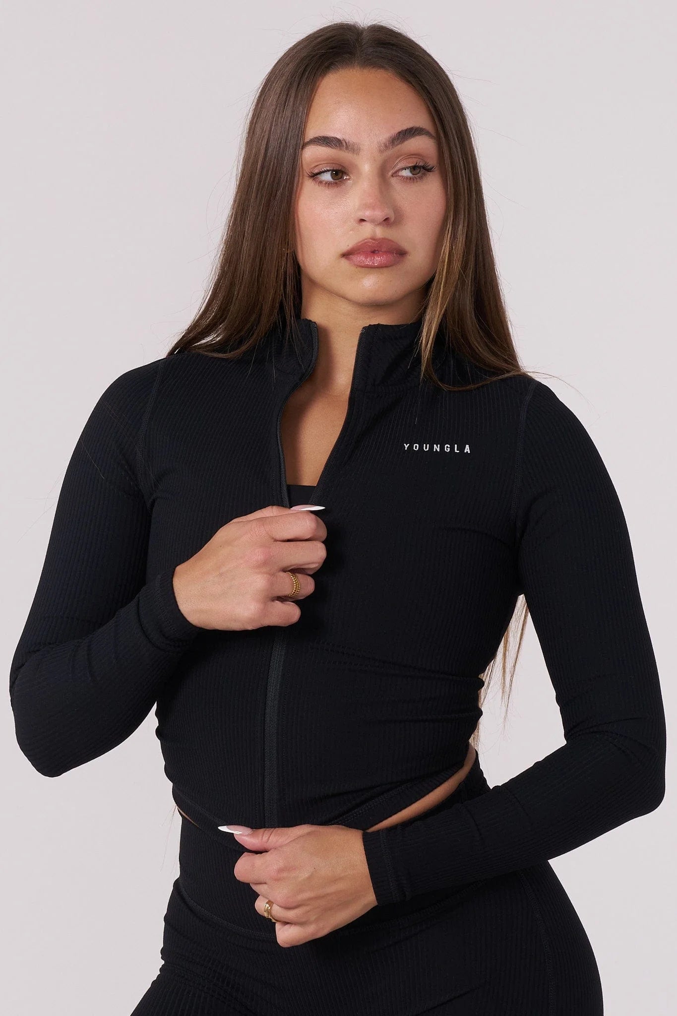 DESIGN: Your new not-so-basic essential. The Luna Jacket is cropped and contoured with thumbholes and a full zip to flex your layers. Made from a soft-stretch fabric that holds its shape and snatches yours. Looks clean. Feels expensive. Goes with everything.